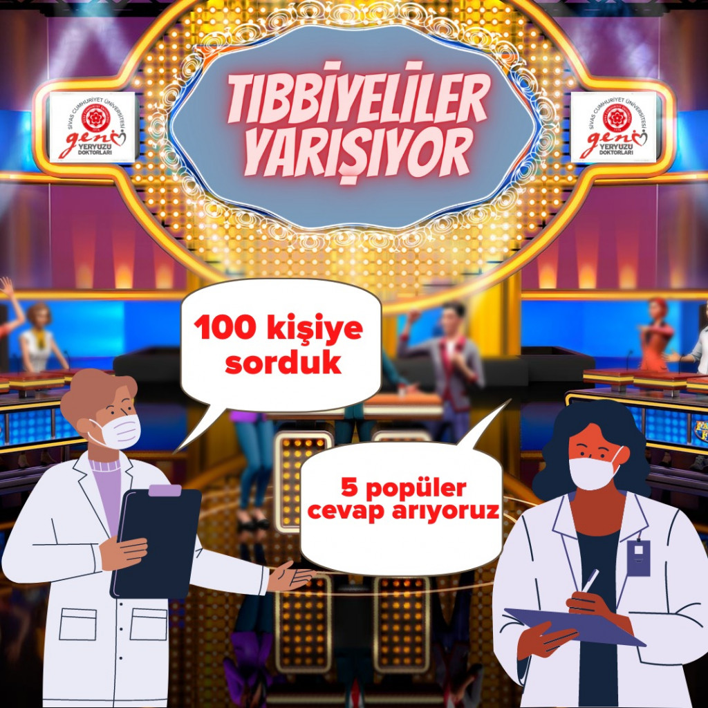 “Tıbbiyeliler yarışıyor” Sivas Cumhuriyet Üniversitesi Genç Yeryüzü Doktorları kulübü olarak 11 Mayıs 2022 günü saat 17:00-19:00 saatleri arasında SCÜ Tıp Fakültesinde yapılmasını planladığımız bir yarışma programıdır. Her takım dört üyeden oluşmak üzere toplam sekiz takım yarışacaktır.