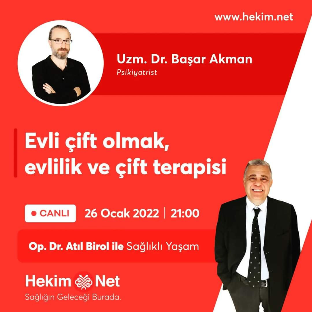 26 Ocak  2022 Çarşamba günü Saat 21'de Hekim.Net  Platformunda  "Op.Dr. Atıl Birol ile Sağlıklı Yaşam Programında "