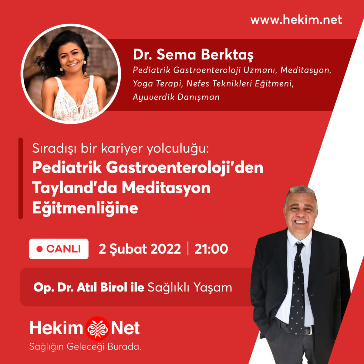 2 Şubat  2022 Çarşamba günü Saat 21'de Hekim.Net  Platformunda  "Op.Dr. Atıl Birol ile Sağlıklı Yaşam Programında "
