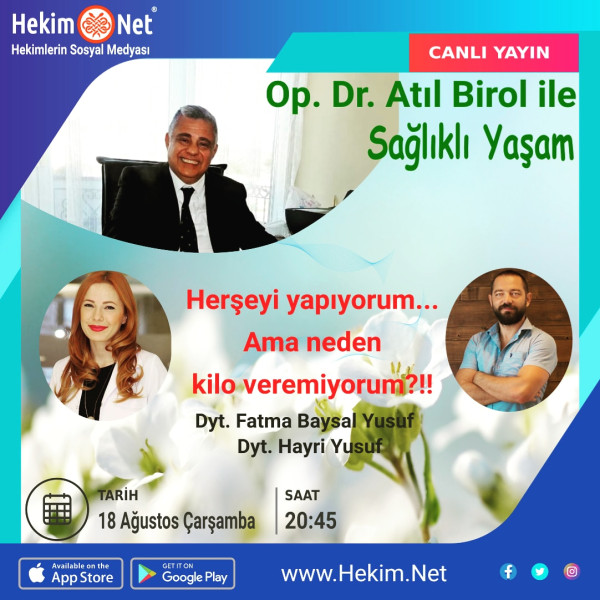 18 Ağustos 2021 Çarşamba günü Saat 20.45 'de Hekim.Net Platformunda "Op.Dr.Atıl Birol ile Sağlıklı Yaşam" Programında