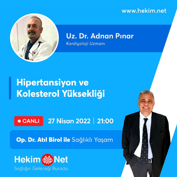 27 Nisan 2022 Çarşamba günü Saat 21'de Hekim.Net Platformunda " Op.Dr. Atıl Birol ile Sağlıklı Yaşam " Programında
