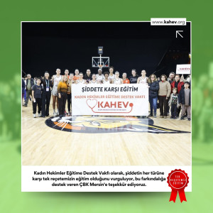 Kadın Hekimler Eğitime Destek Vakfı olarak toplumsal alanda farklı biçimlerde karşımıza çıkabilen ve toplumdaki tüm bireyleri her an tehdit edebilecek olan şiddetin hemen her türüne, tek reçetemiz eğitim diyerek yurdumuzun her köşesinde hayata geçirdiğimiz eğitim projelerimize devam ediyor, KAHEV'i maça davet eden ve KAHEV Şiddete karşı eğitim pankartı açan ÇBK Mersin'e teşekkür ediyoruz.